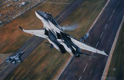 The Sukhoi SU-27 burst upon the airshow scene in the late 80s, stunning the aviation world with its performance and manouevrability. Here it demonstrates its version of the "Tail Slide"....the so-called "Cobra" which involved an unbelievable 110 degrees of AOA. |